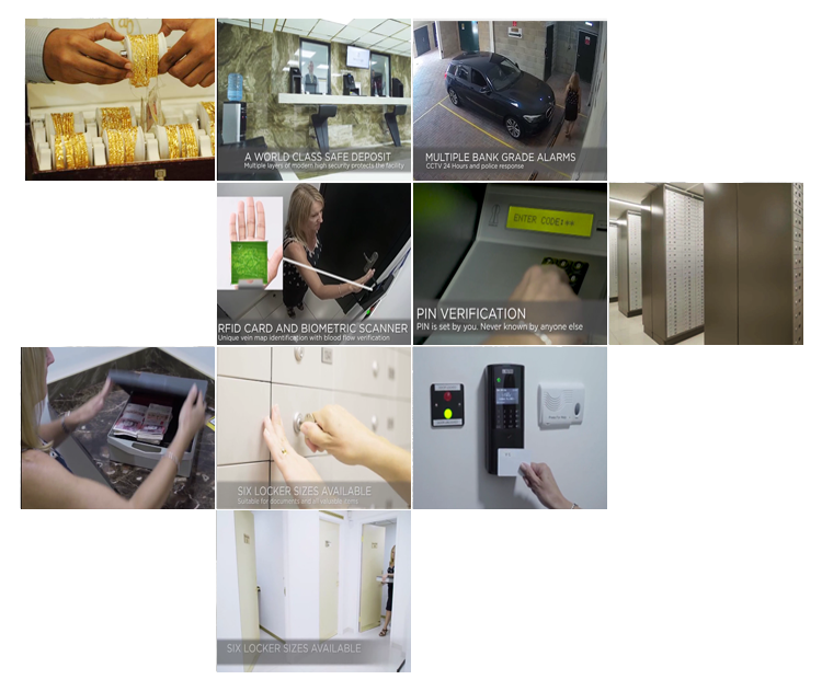 Our vaults house thousands of electronic safe deposit lockers. These are sophisticated lockers that can only be opened by the owner of the locker passing through a controlled path along which he or she must first verify a palm vein scan, then enter a PIN code only known to them, and finally once inside the vault use a high security key only held by them.